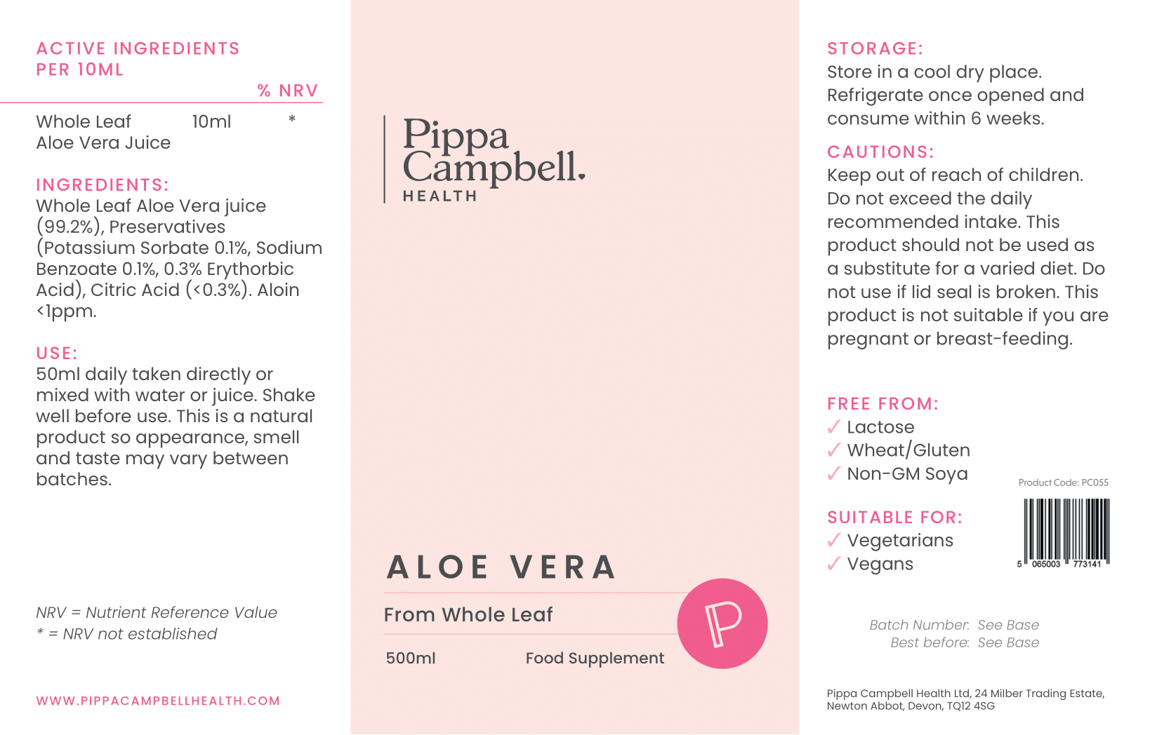 PCH Just Aloe Vera whole leaf juice undergoes careful processing to ensure that the bioactive phytonutrients (including polysaccharides and polyphenols, vitamins and minerals) are maintained to the highest levels and in bioactive forms that can be utilised by the body. Free of heavy metals and other toxins.