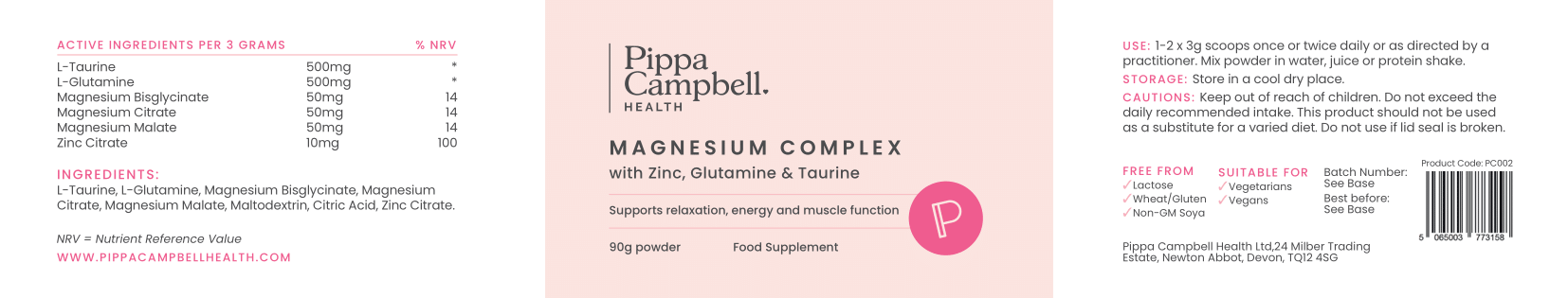 PCH Magnesium Complex is a unique HIGHLY BIOAVAILABLE formula. Easy-to-absorb powder formulation, quickly dissolving into the body. It contains 3 key forms of magnesium needed for optimal health. Combined with Taurine for maximum efficacy.