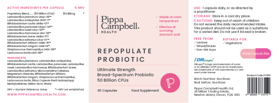 My PCH Repopulate is a broad spectrum, high potency probiotic supplement with 50 billion colony forming units (CFUs) of 12 native bacteria strains per delayed-release capsule for daily or more intensive use.